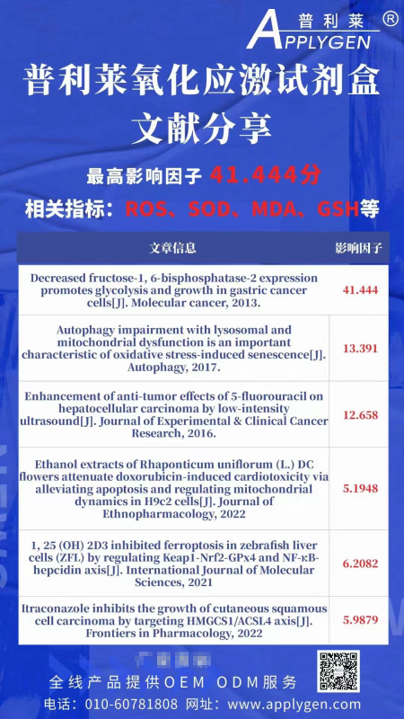 普利萊:氧化應激試劑盒文獻分享,最高影響因子 41.444號相關指標:ROS、SOD、MDA、GSH等